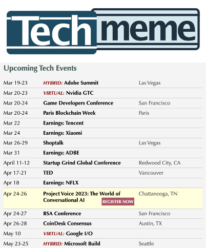 Thank you to Techmeme, as usual, for their partnership in promoting Project Voice 2023: The World of Conversational AI.